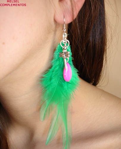 Pendientes de plumas con lágrima de nácar tintado y libélula