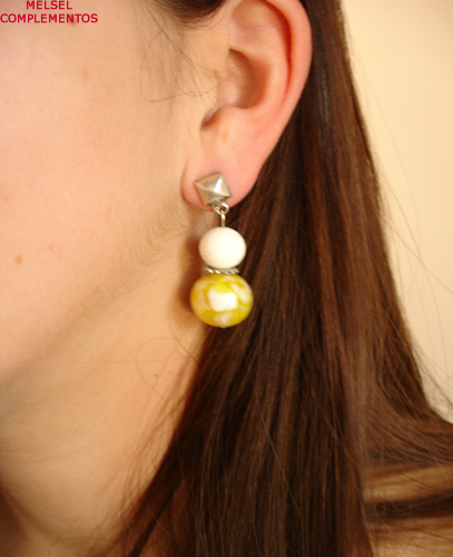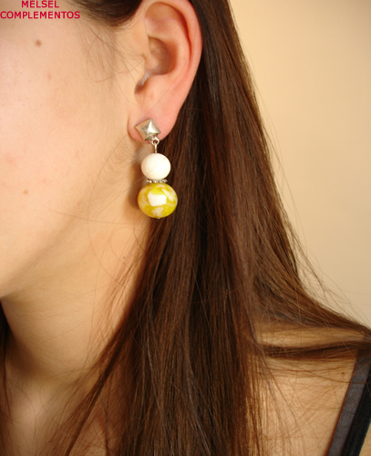 Pendientes de nácar tintado, piedra volcánica blanca y cierre de zamak.